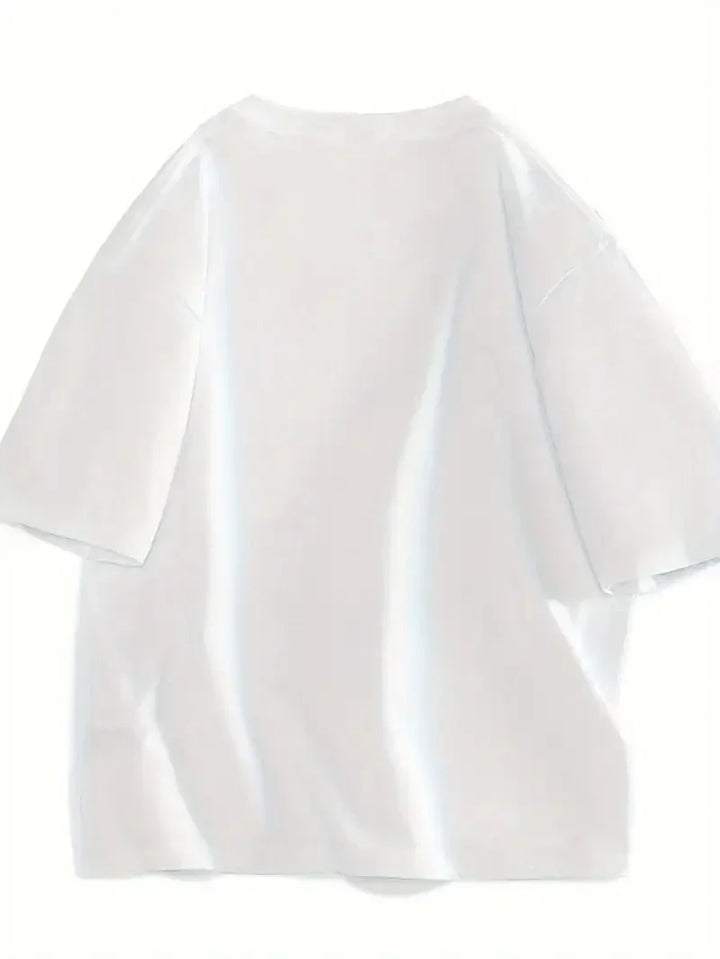 20/1 Penye Compack Gülücük Baskılı Oversize Bisiklet Yaka Kısa Kol Yazlık T-shirt - Beyaz