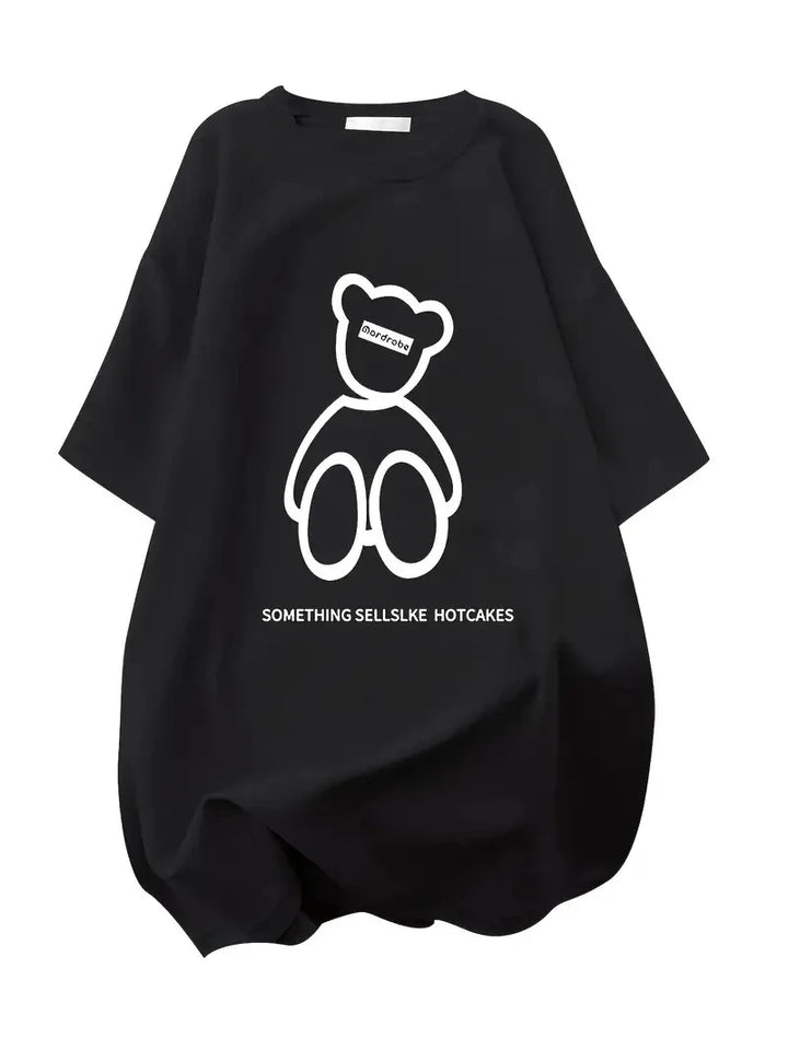 20/1 Penye Compack Ön Arka Baskılı Oversize Bisiklet Yaka T-shirt - Siyah
