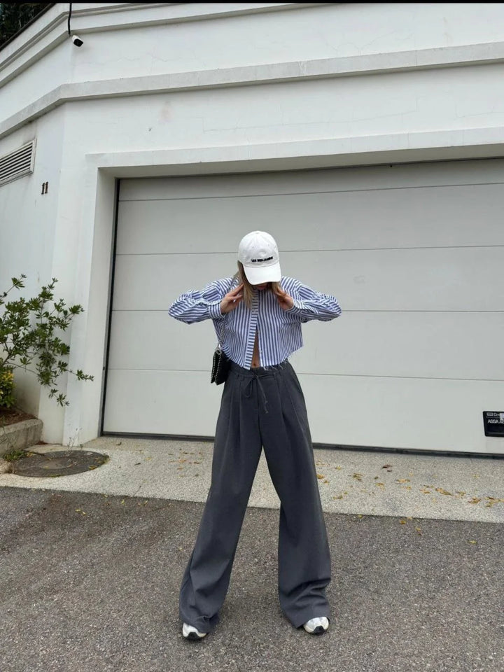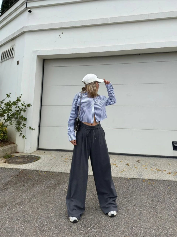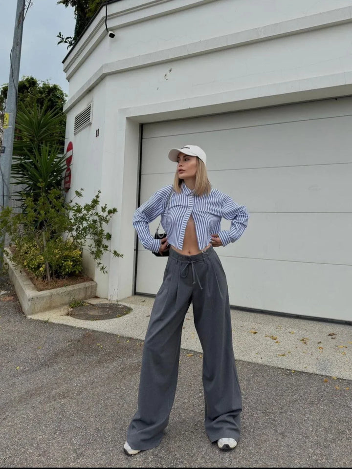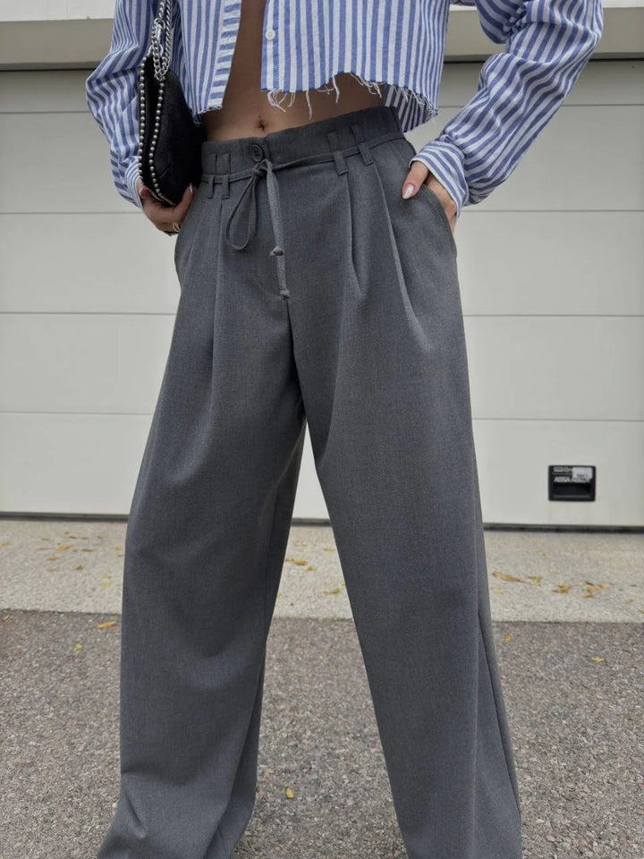 Bağcıklı Palazzo Bol Paça Pantolon - Gri