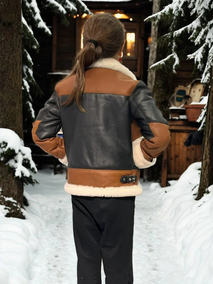 Çocuk Yakalı Parçalı Kürk - Kahve