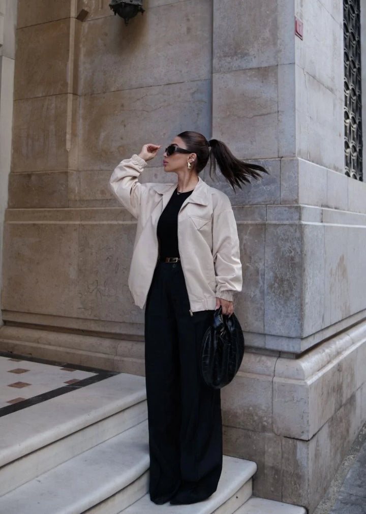 Fermuarlı Gömlek Yaka Bomber Ceket - Beyaz