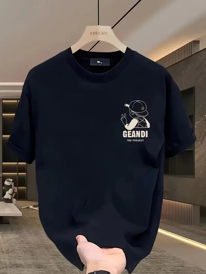 Geniş Kesim Pamuklu Tişört - "GANDHI The Project" Baskılı, Siyah, Rahat Kesim, Kısa Kollu, Günlük Kıyafet, Her Gün Giyilebilecek Tişört- Siyah
