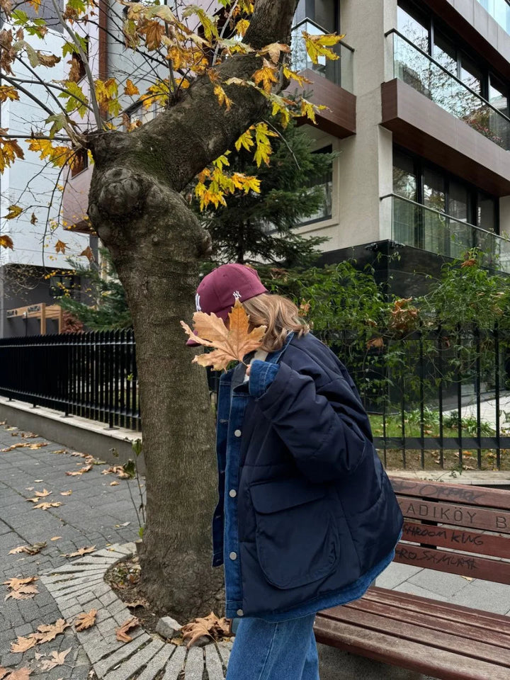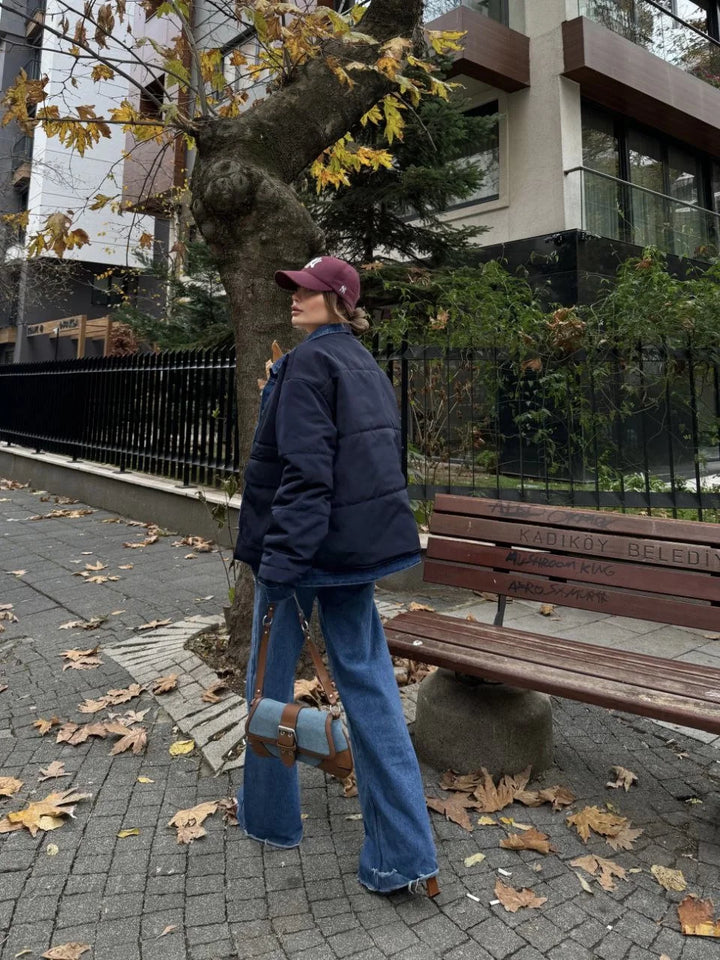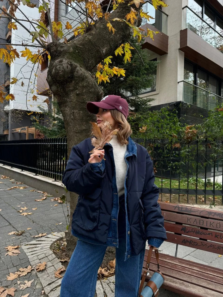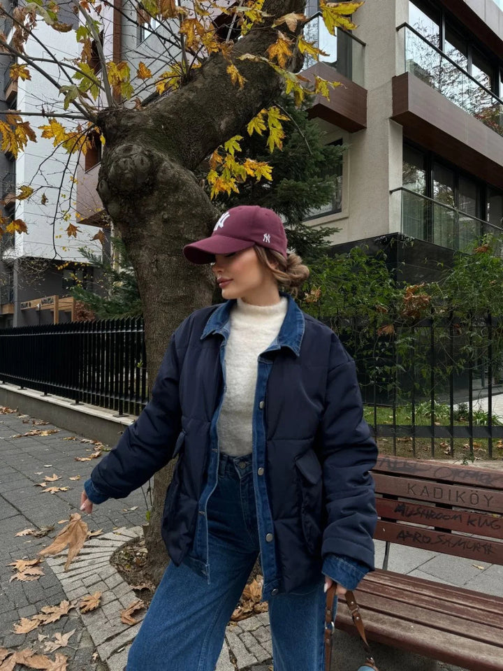 Jeans Detaylı Cıtcıtlı CEKET - Lacivert