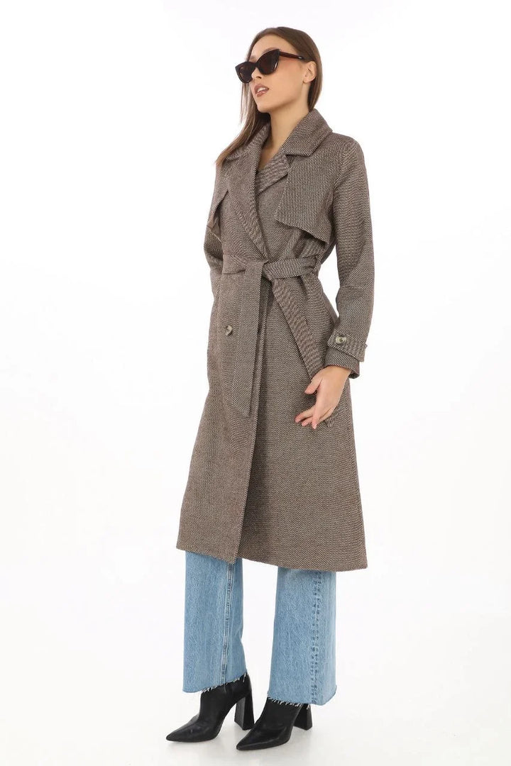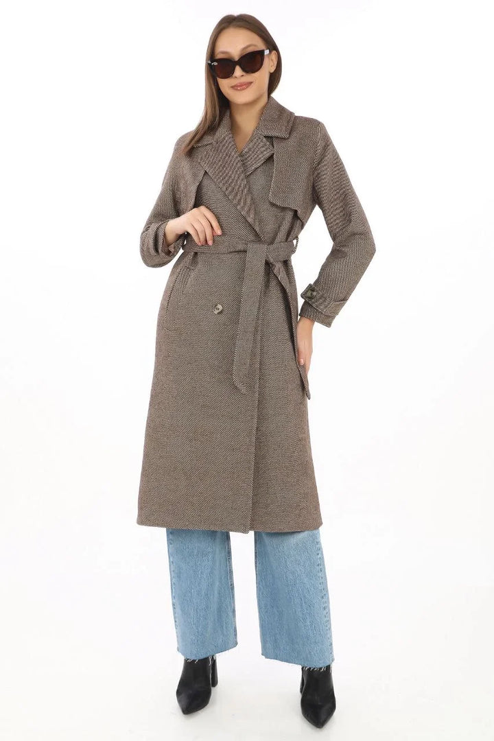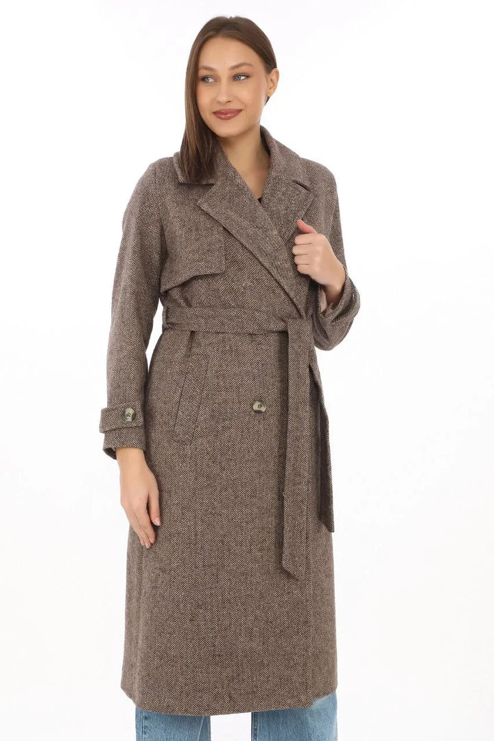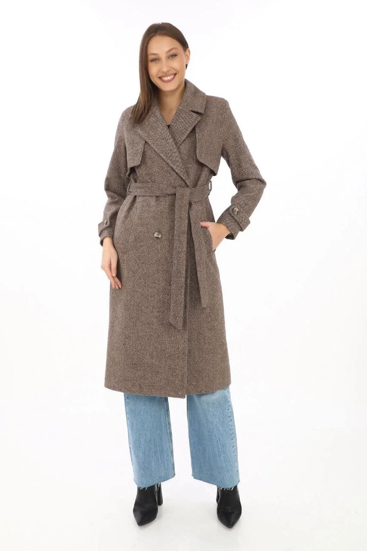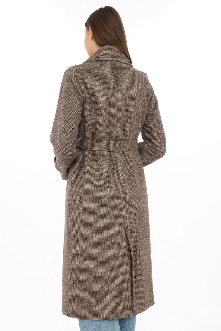 Kadın Balık Sırtı Kaşmir Uzun Kaşe Kaban - Vizon