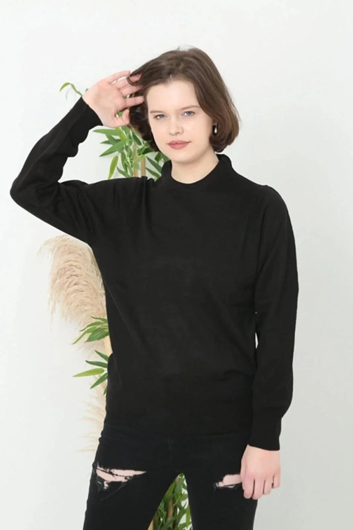 Kadın Bisiklet Yaka Düz Kazak - Siyah