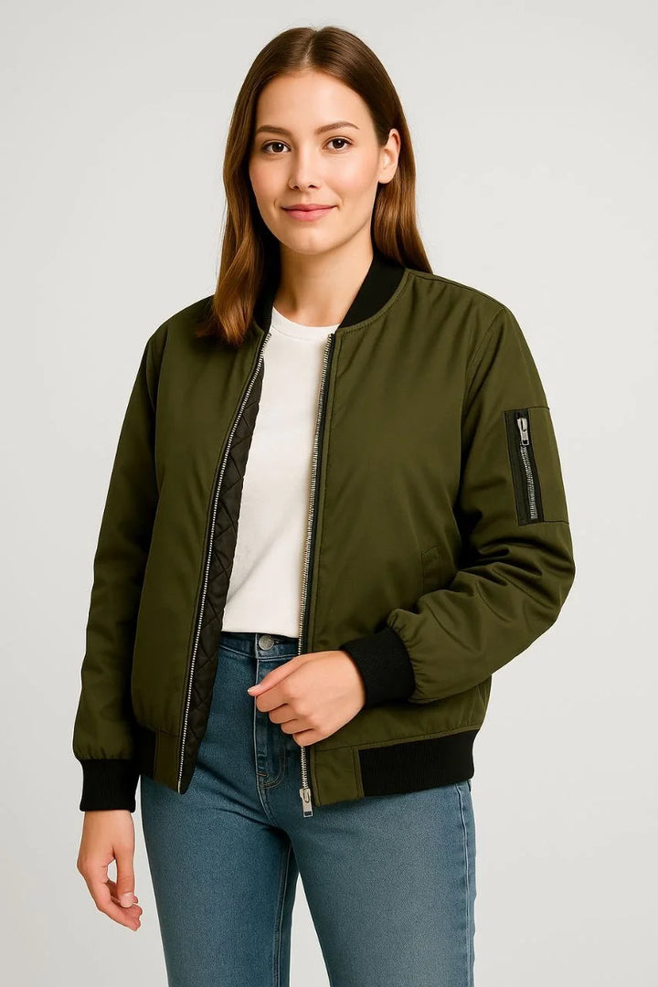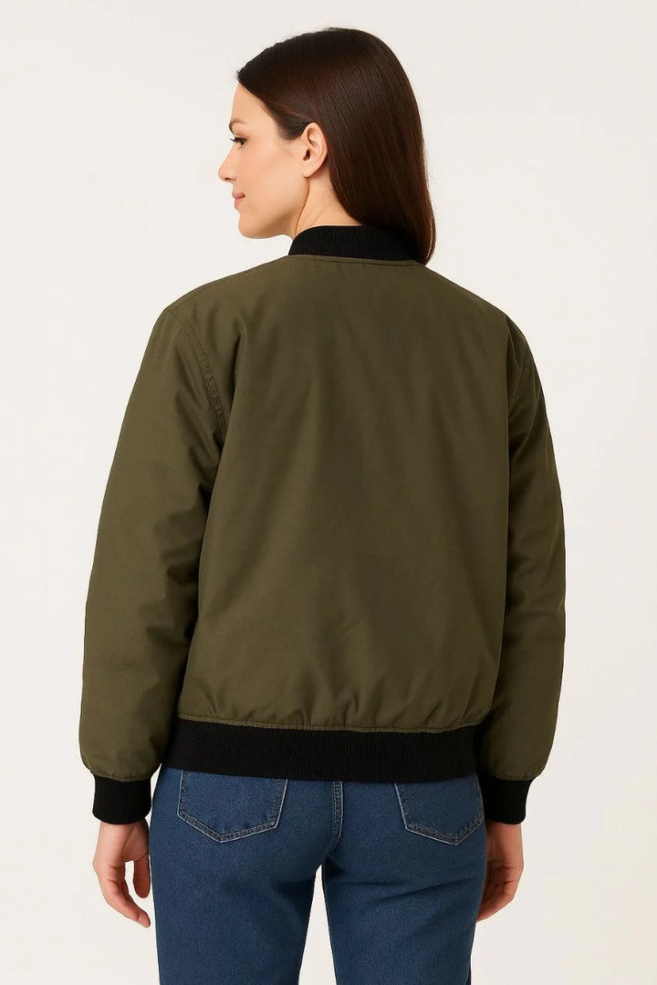 Kadın Bomber Mont Ceket – Fermuarlı, Kapitone İçi Astarlı, Su İtici Kumaş, Regular Fit, Yandan Cepli, Günlük Bahar & Kış Şık Rahat Stil - Haki
