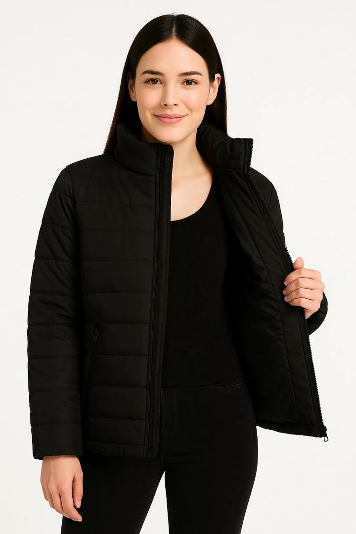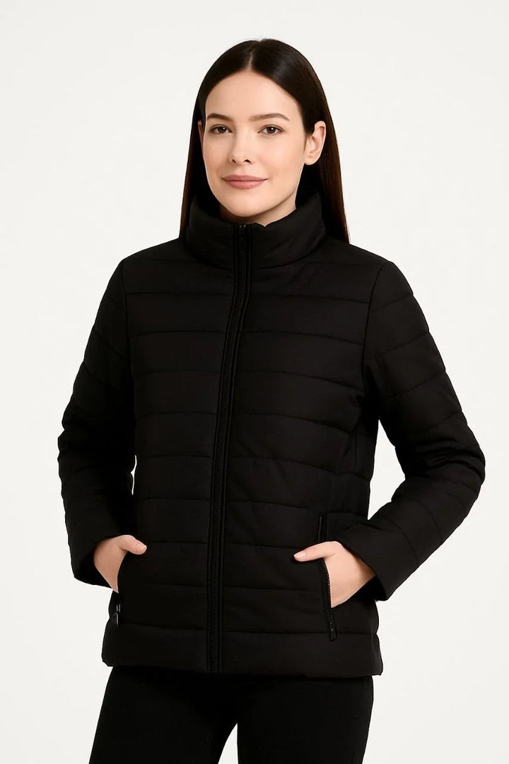 Kadın Bomber Mont Ceket – Su İtici Kumaş, Kapitone Astarlı, Fermuarlı, Kışlık - Siyah