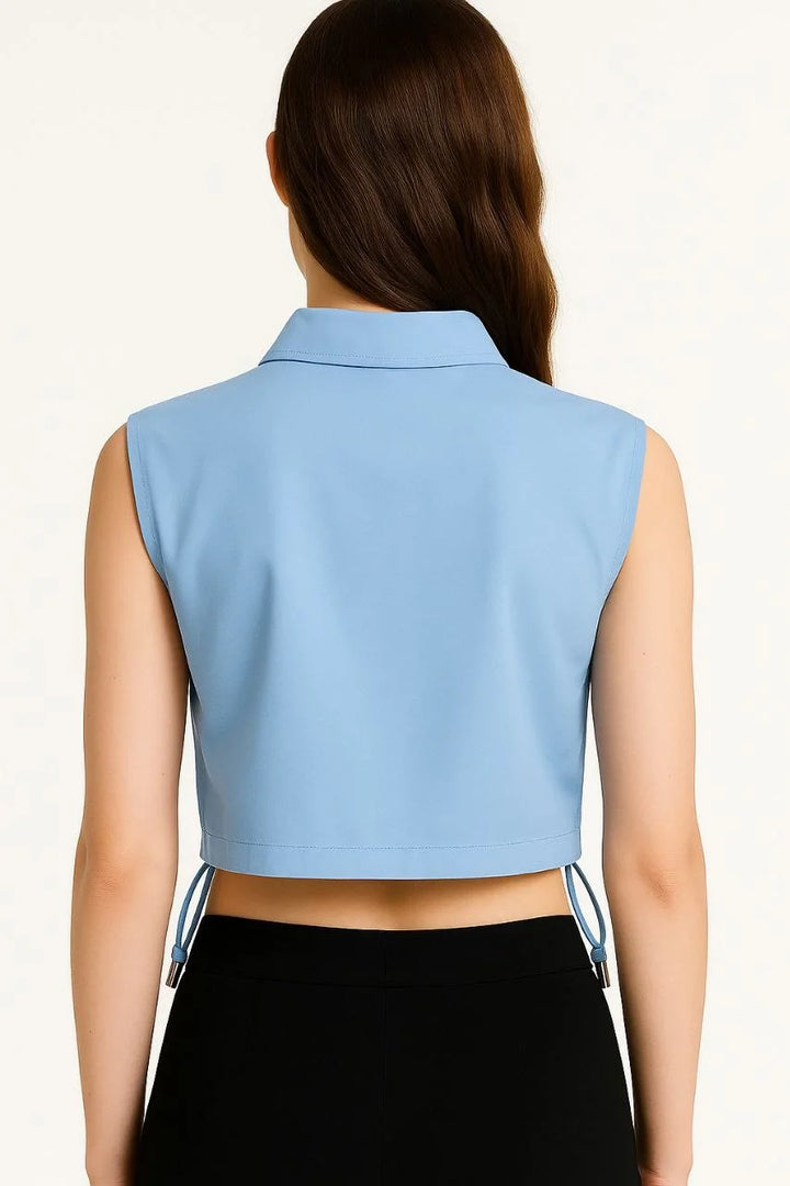 Kadın Crop Poplin Gömlek Yalancı Cepli, Ayarlanabilir Yan Kordonlu, - Bebe Mavisi
