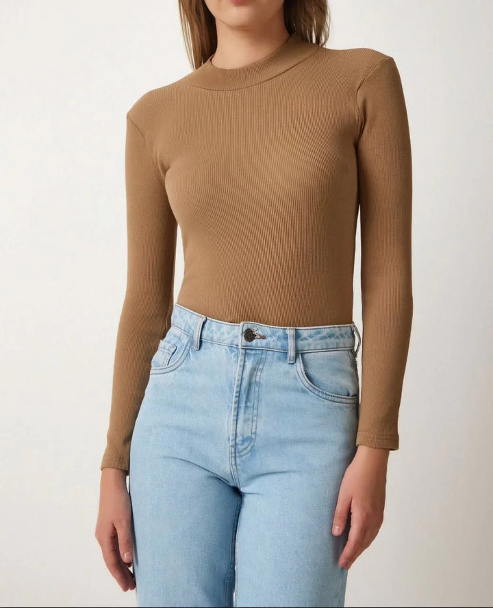 Kadın Full Likralı Fitilli Kaşkorse Body - Kahve