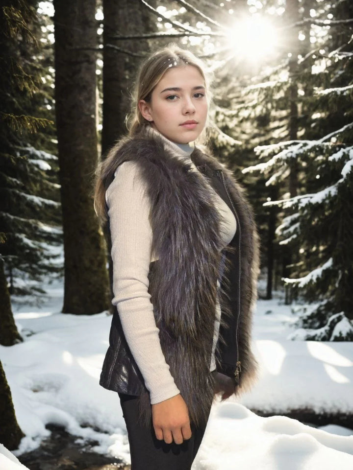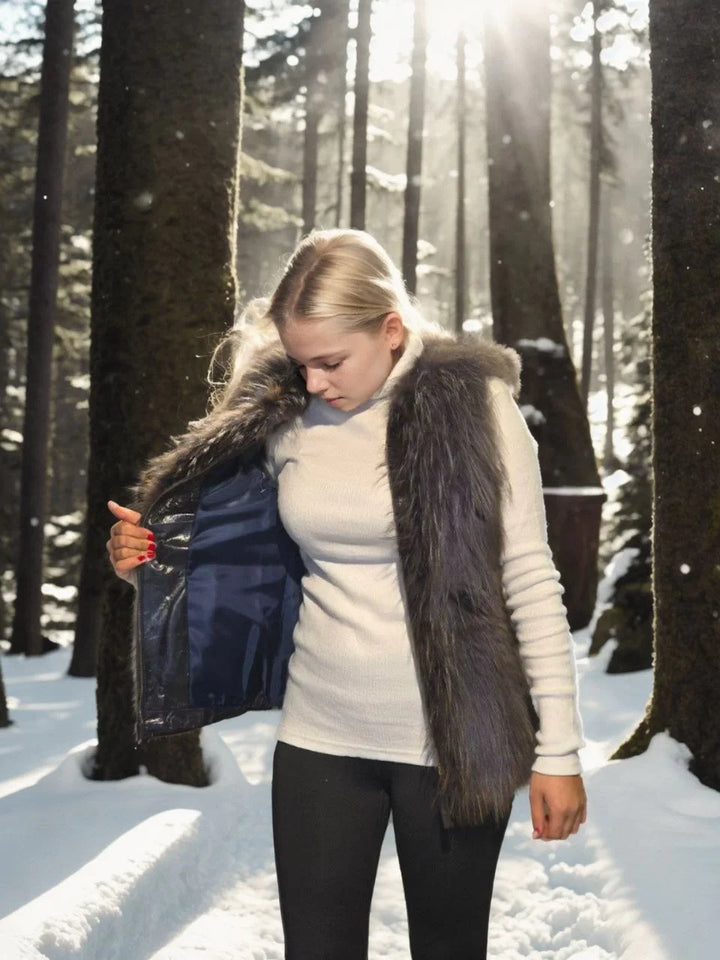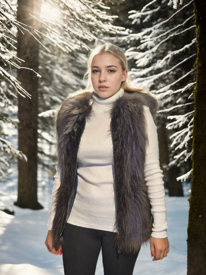Kadın Kolsuz Fermuarlı Yelek - Siyah