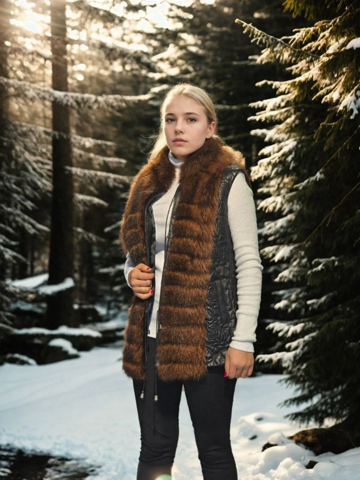 Kadın Kolsuz Fermuarlı Yelek - Siyah