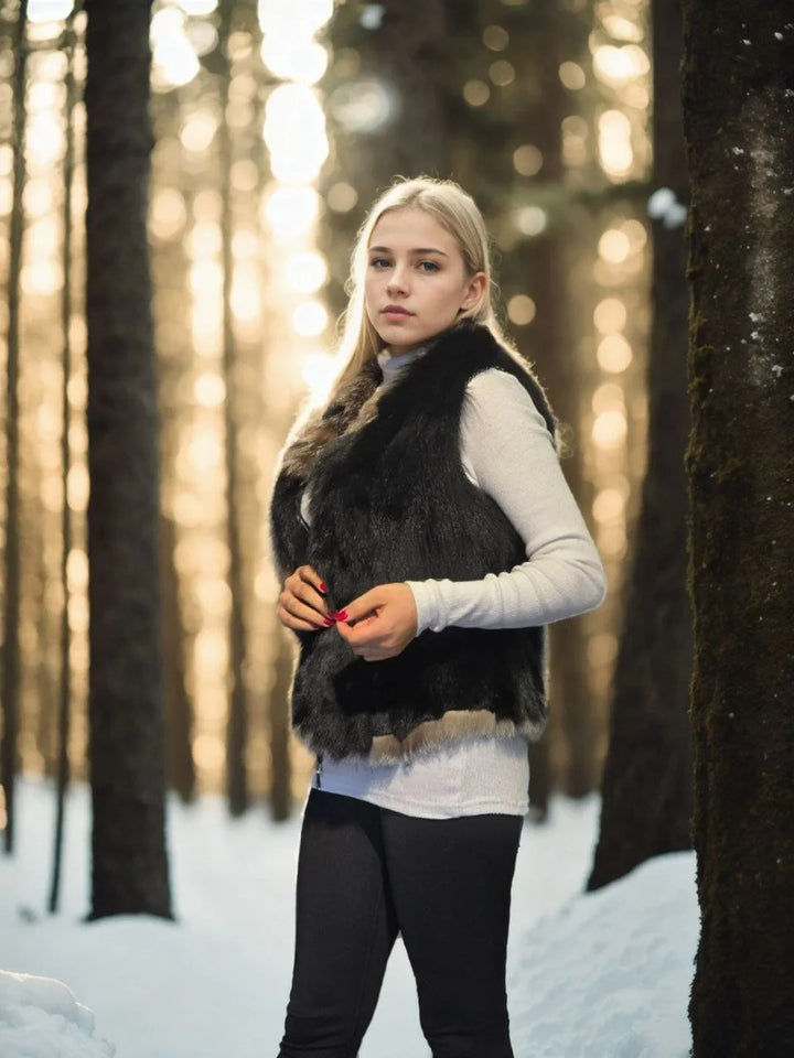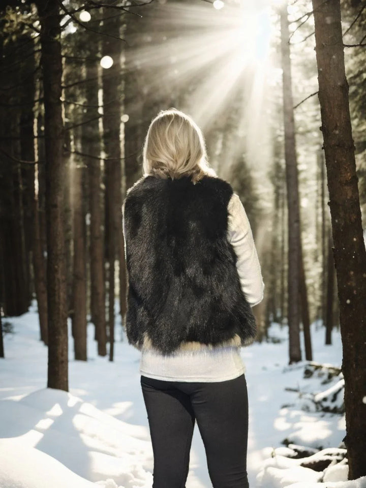 Kadın Kolsuz Fermuarlı Yelek - Siyah