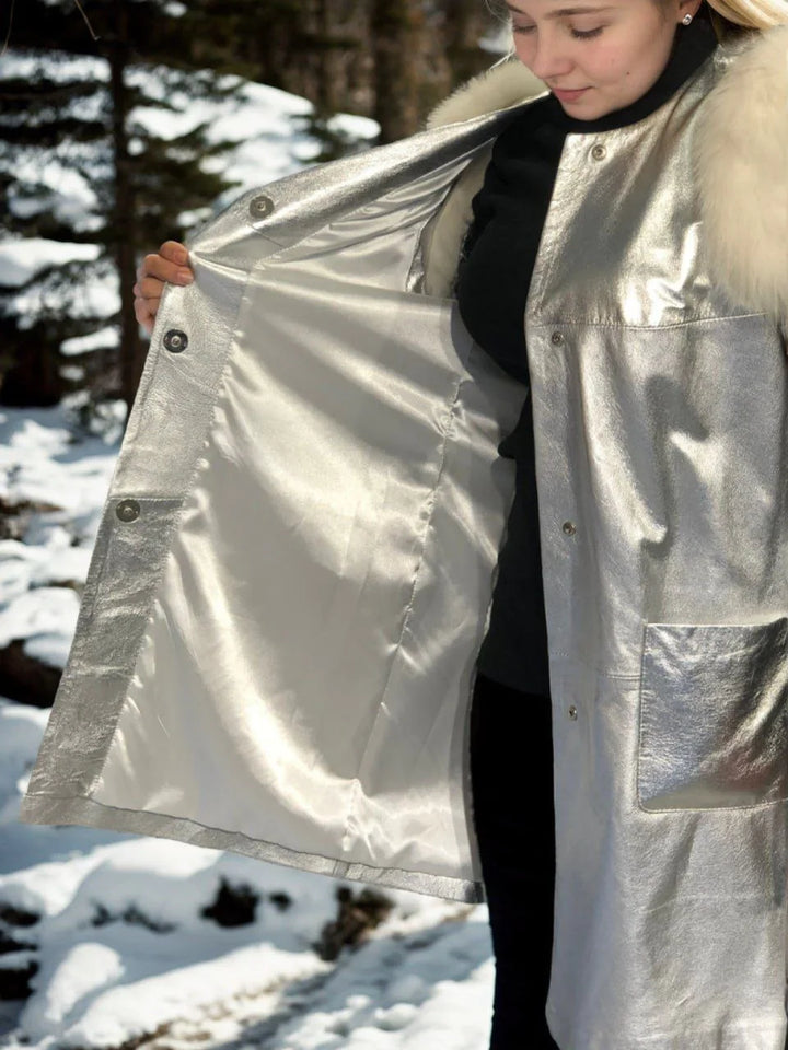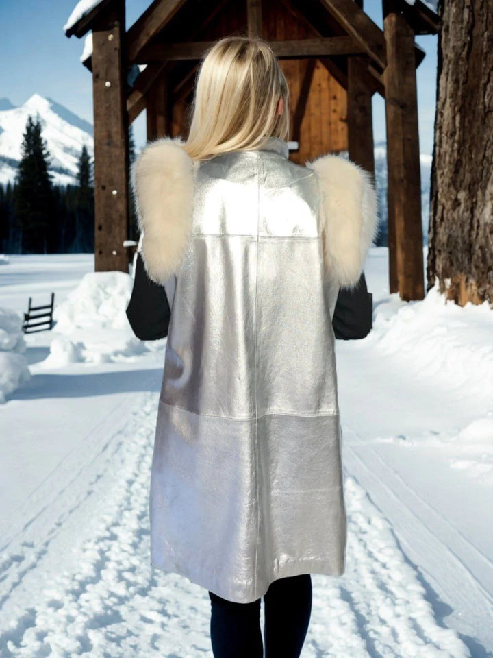 Kadın Kolsuz Hakiki Deri Kürk - Gri