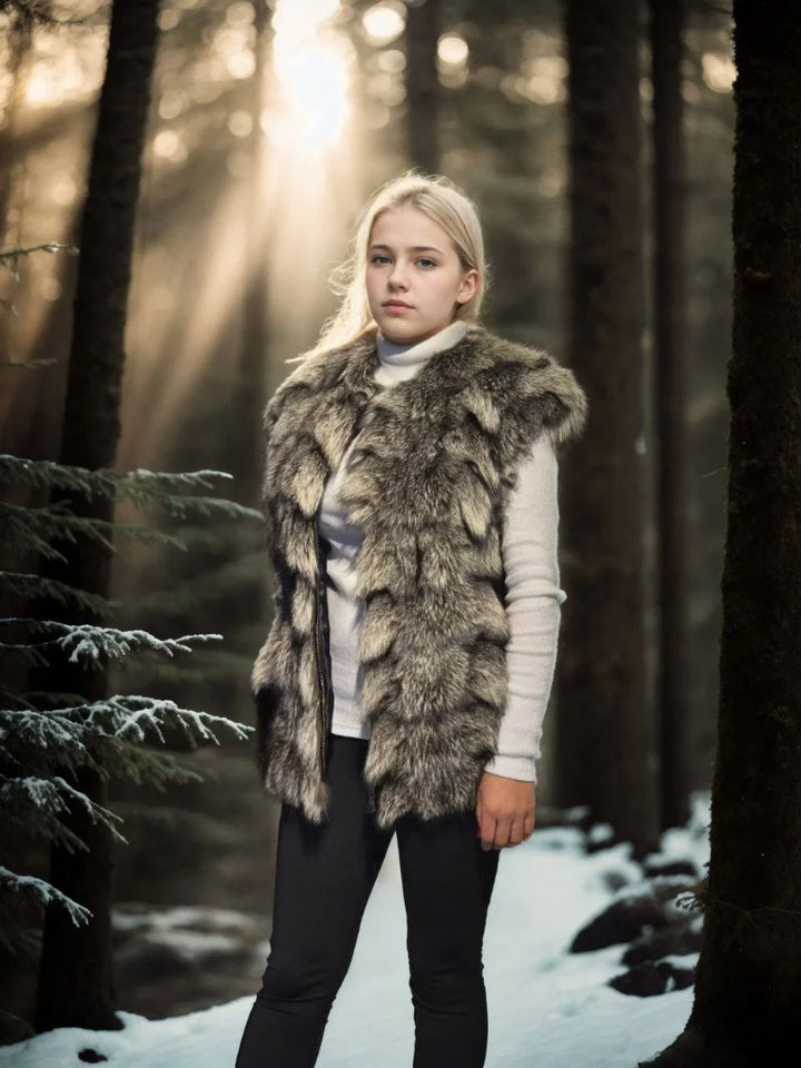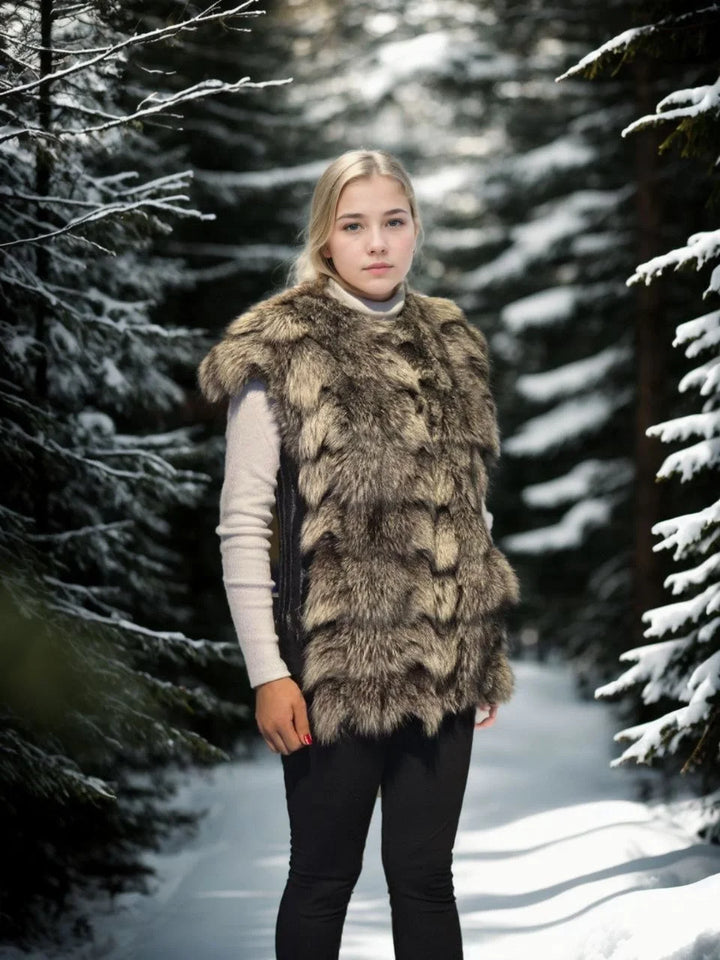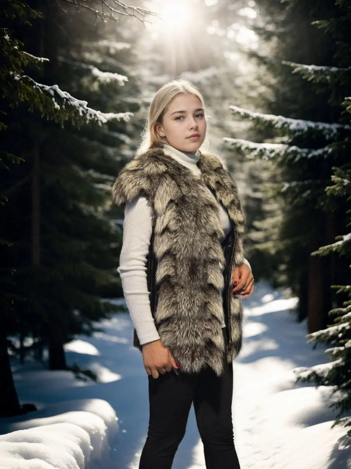 Kadın Kolsuz Hakiki Deri Kürk - Siyah