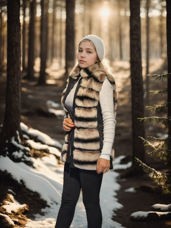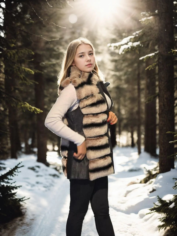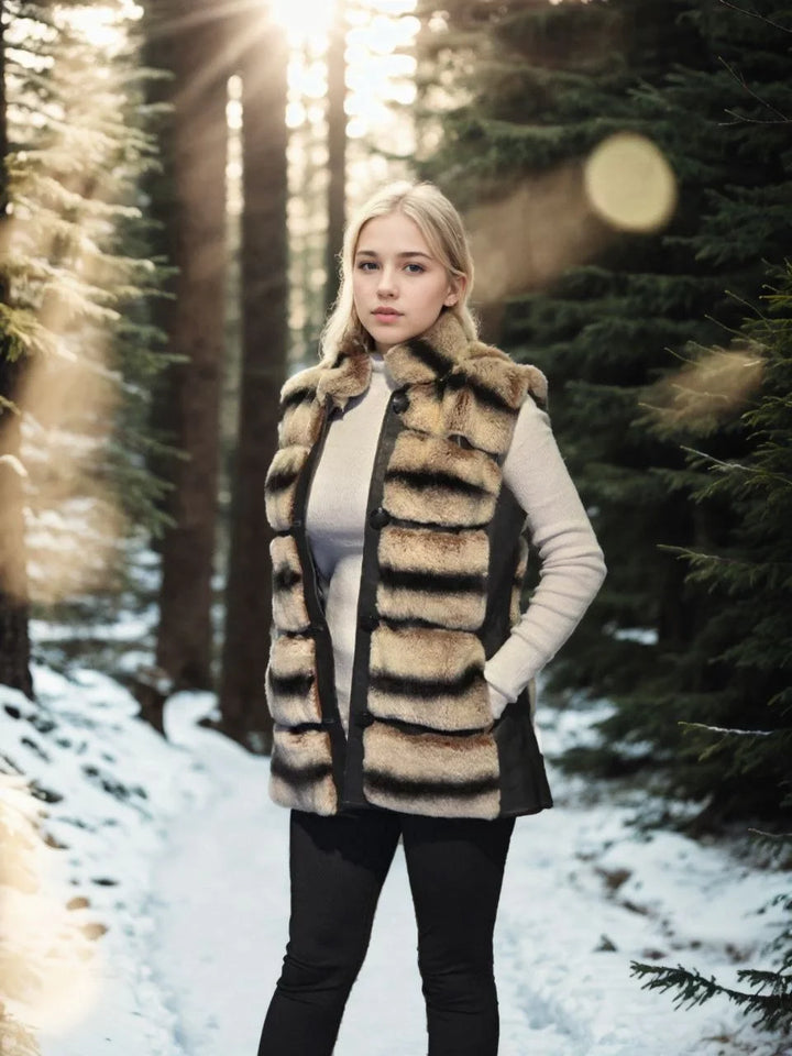 Kadın Kolsuz Hakiki Deri Kürk - Siyah
