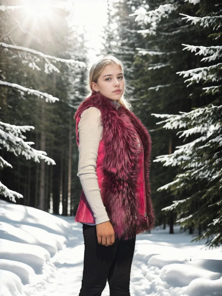 Kadın Kolsuz Hakiki Yelek - Fuşya
