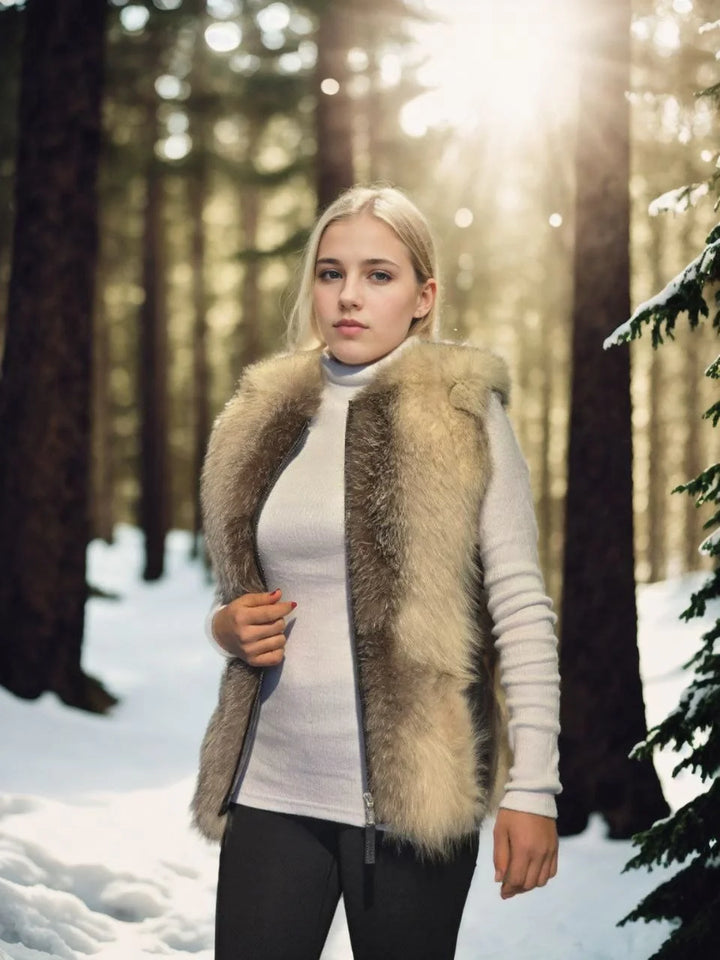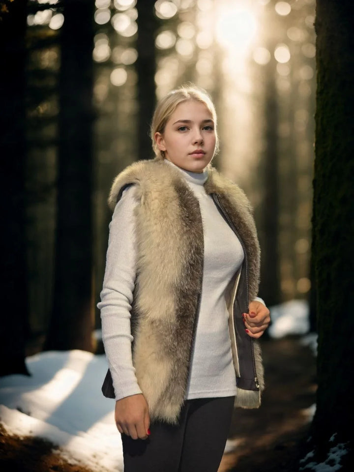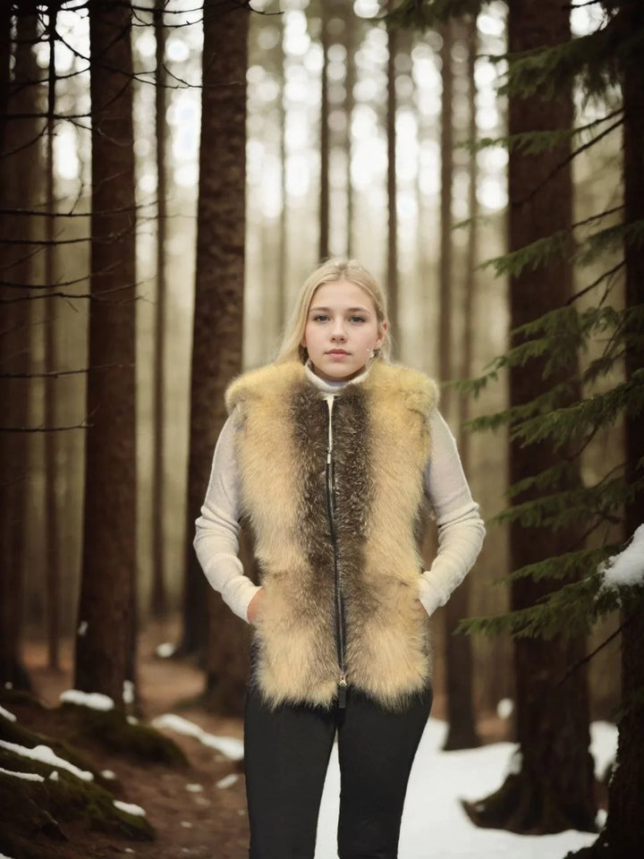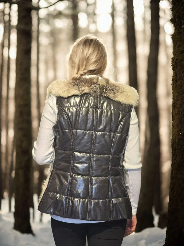 Kadın Kolsuz Hakiki Yelek - Fuşya