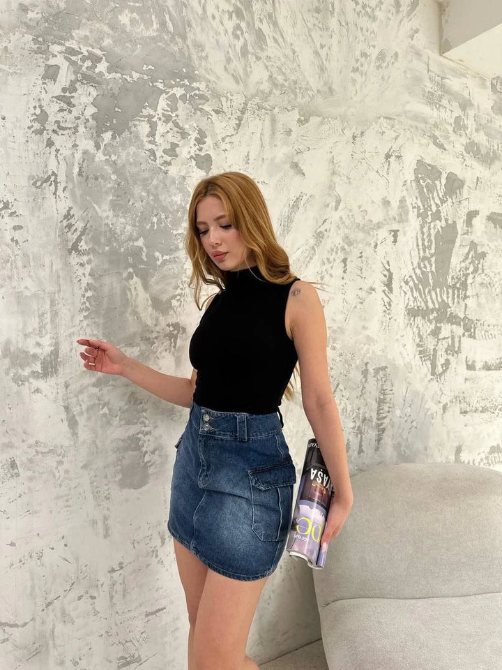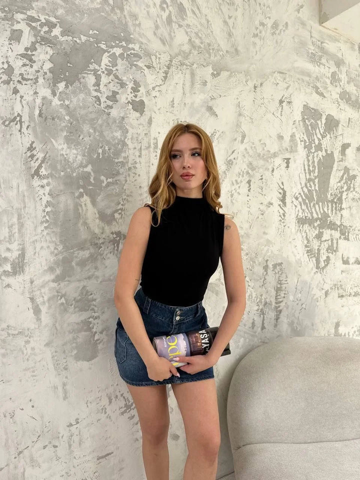 Kadın Kolsuz Yarım Bağazlı Badi bluz - Siyah