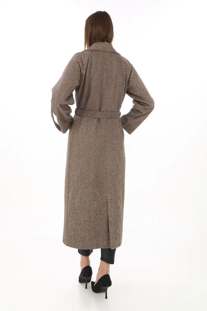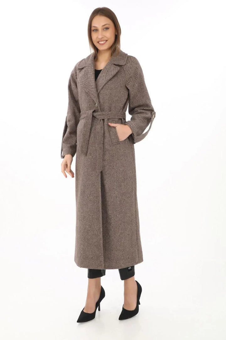 Kadın Kolu Apoletli Astarlı Kaşmir Kaşe Kaban - Vizon