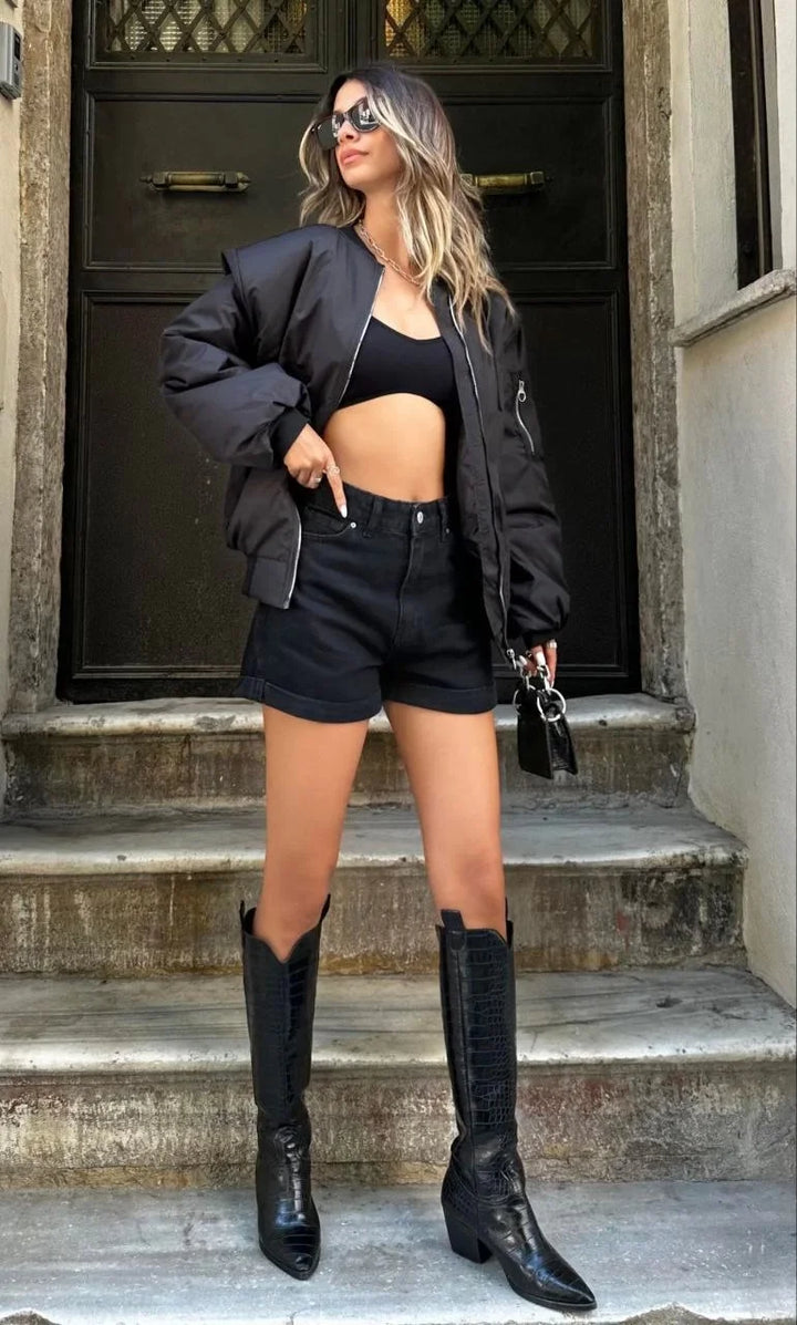 Kadın Oversize Bomber Ceket – Siyah, Fermuarlı, Sokak Modası Tarzı Mont - Siyah