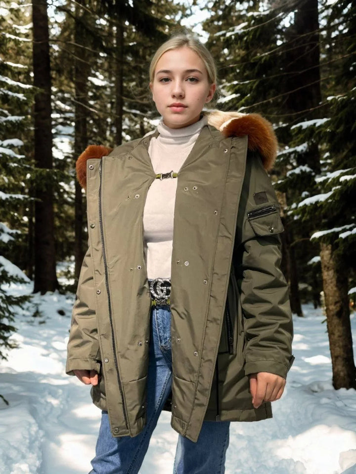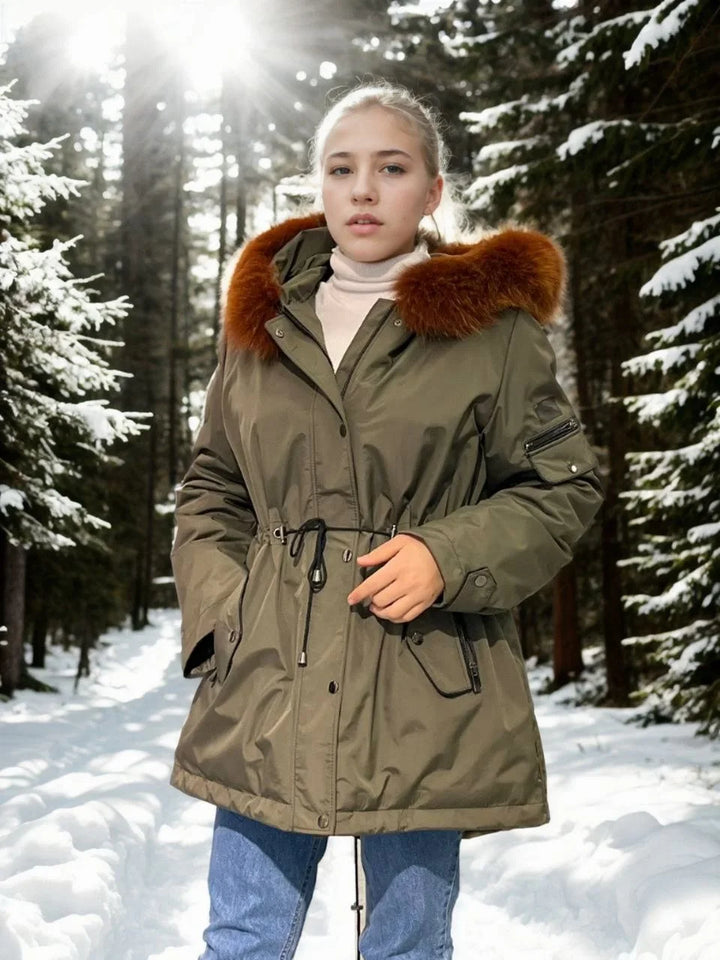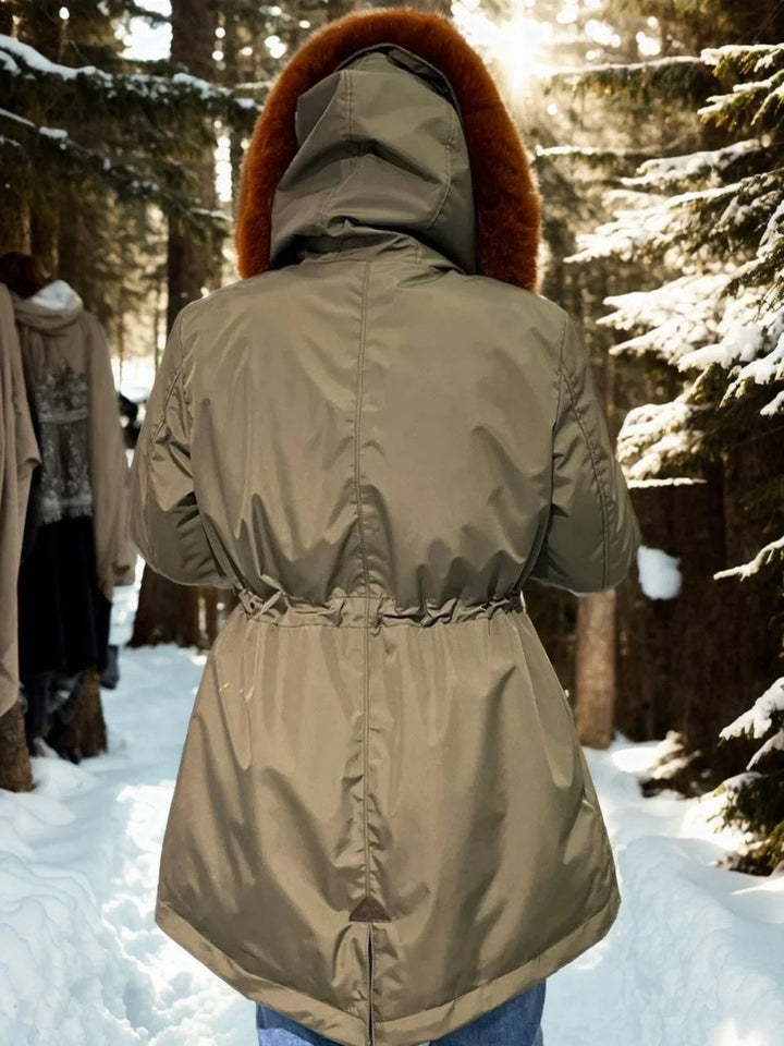 Kadın Su Geçirmez Kapüşonlu Mont - Haki