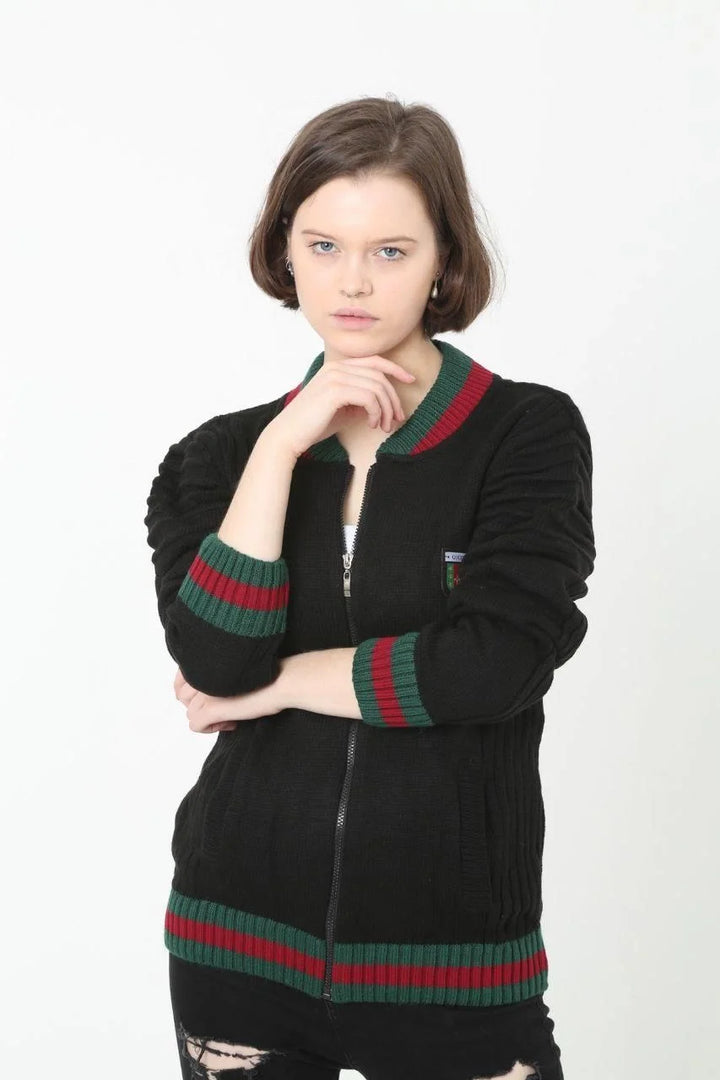 Kadın Tam Fermuarlı Triko Hırka - Siyah
