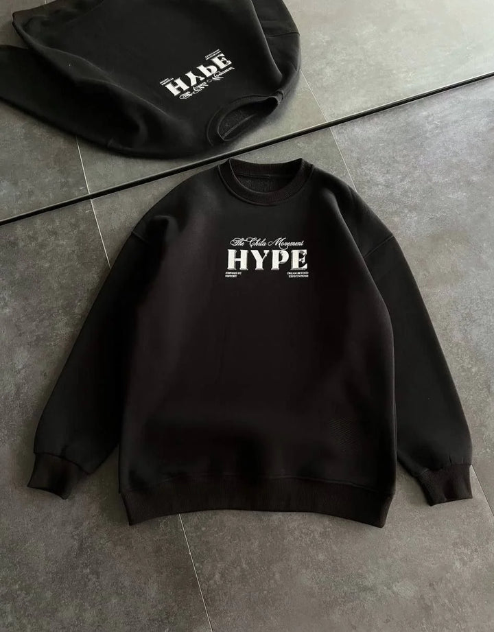 Kadın Üç İplik Bisiklet Yaka Baskılı SweatShirt - Siyah