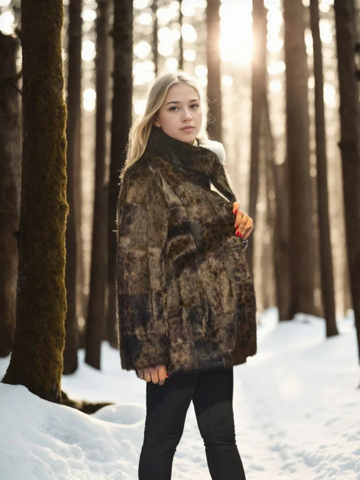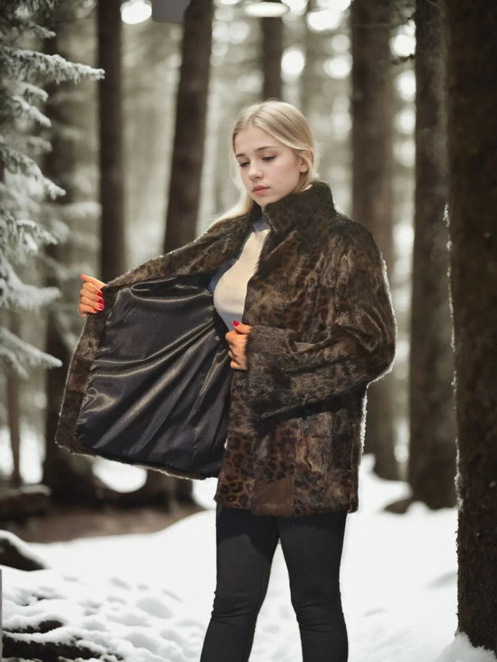 Kadın Uzun Kollu Deri Ceket - Leopar