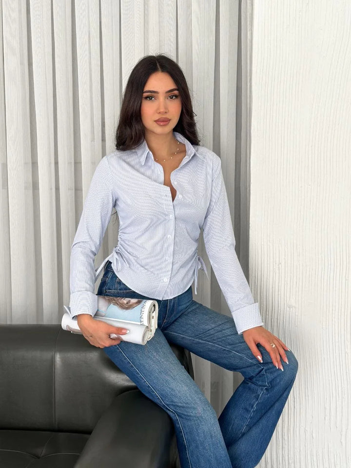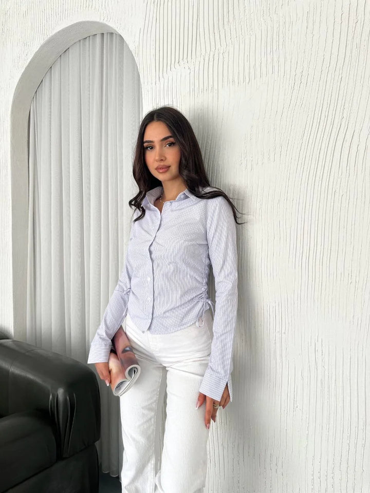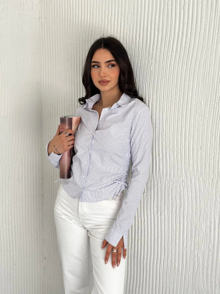 Kadın Uzun Kollu yandan Bağlama detaylı Gömlek - Beyaz