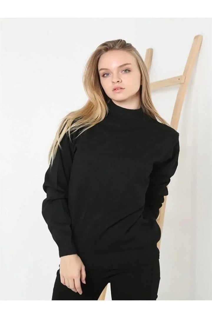 Kadın Yarım Balıkçı Yaka Triko Kazak - Siyah