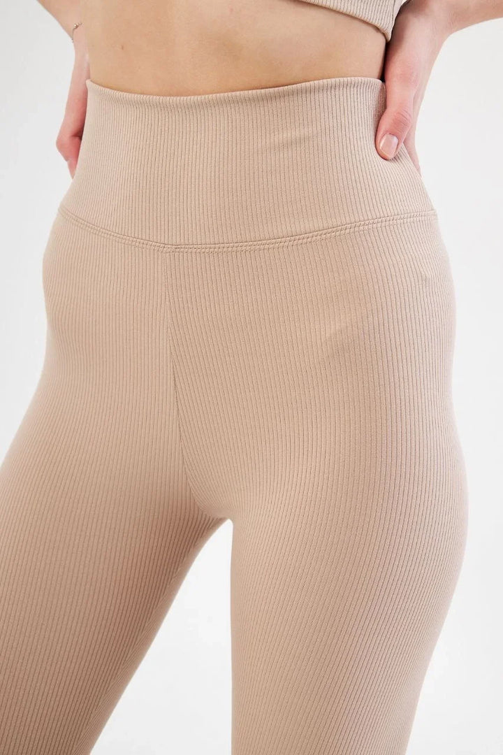 Kadın Yüksek Bel Fitilli Tayt - Bej