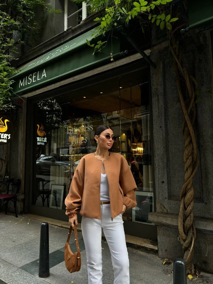 Kaşe Kaşmir Fermuarlı CEKET - Kahve