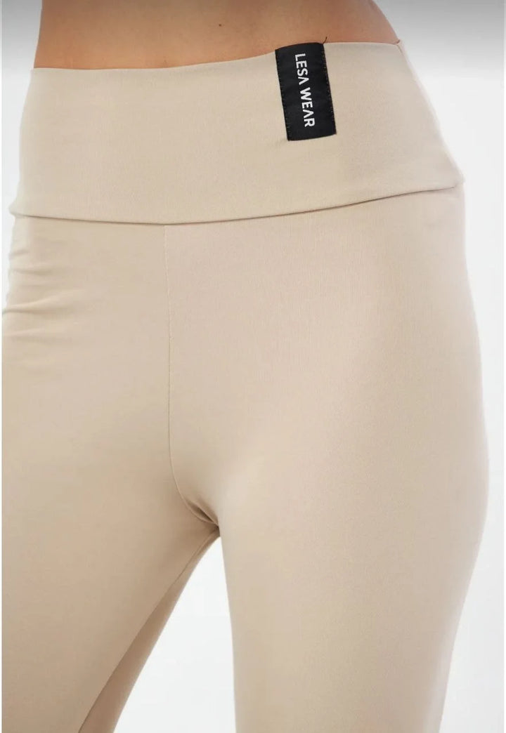 Kışlık Yüksek Bel Toparlayicı ve Sıkılaştırıcı Likralı Şardonlu Tayt - Bej