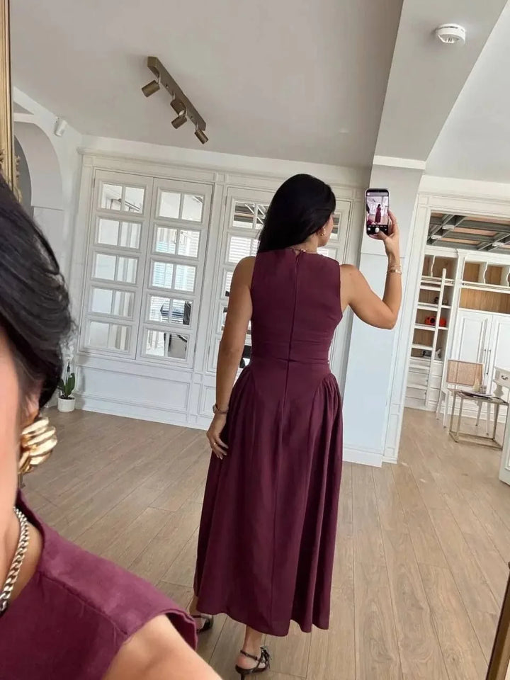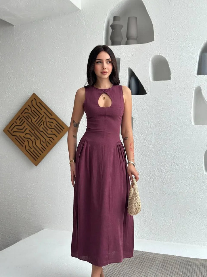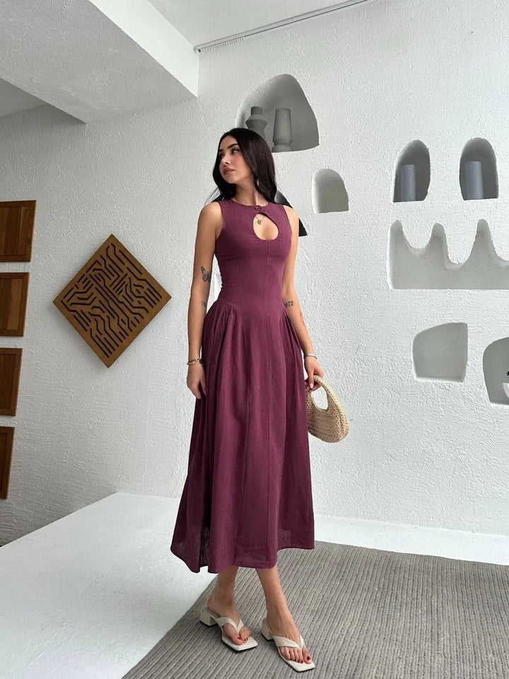 Kolsuz Uzun Kabardin Elbise - Bordo