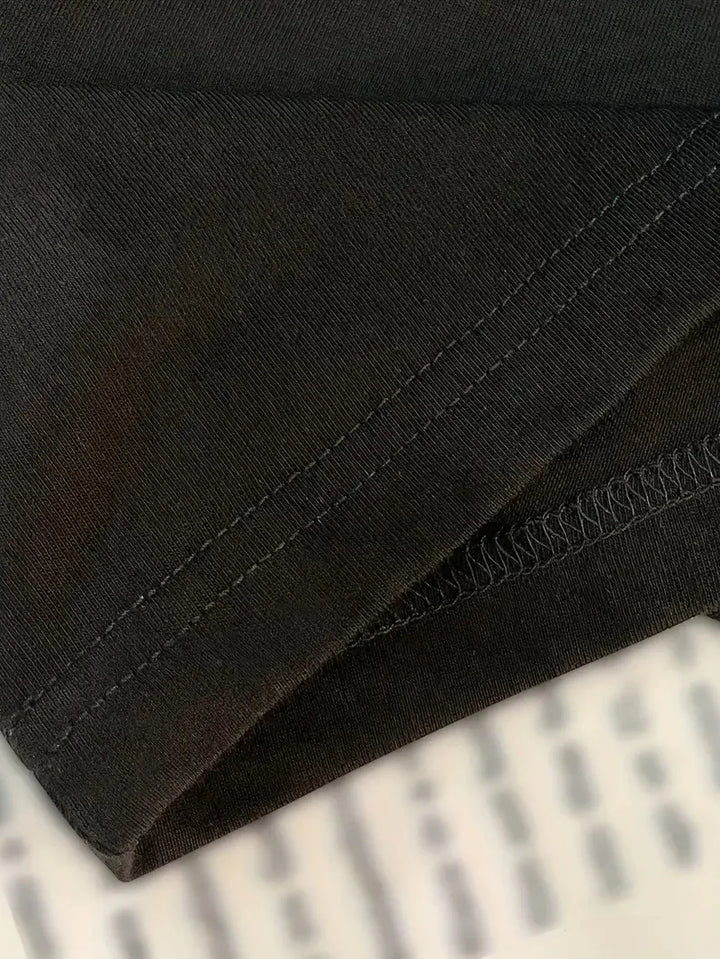Newtro Baskılı Oversize Bisiklet Yaka T-shirt - Siyah