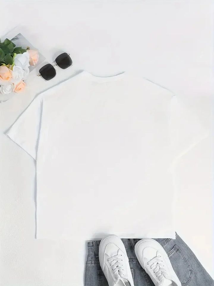 Ördek Baskılı ve Yuvarlak Yakalı Kadın Günlük Büyük Boy Siyah Tişört. - Beyaz