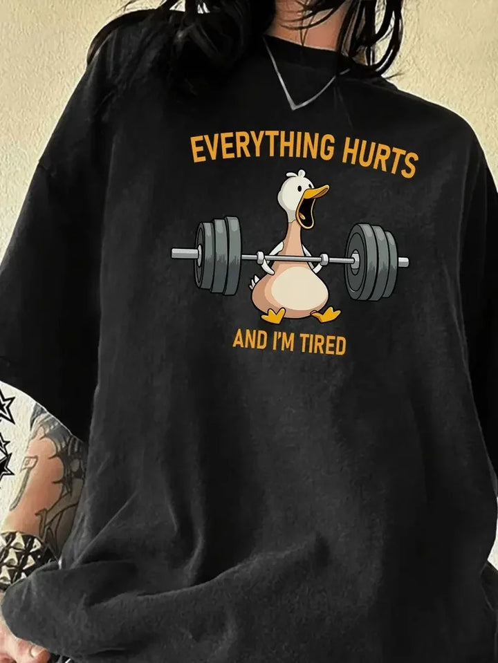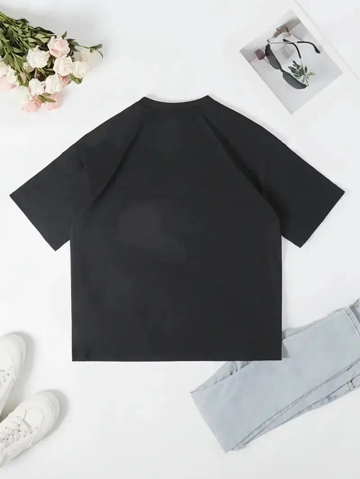 Ördek Baskılı ve Yuvarlak Yakalı Kadın Günlük Büyük Boy Siyah Tişört. - Siyah