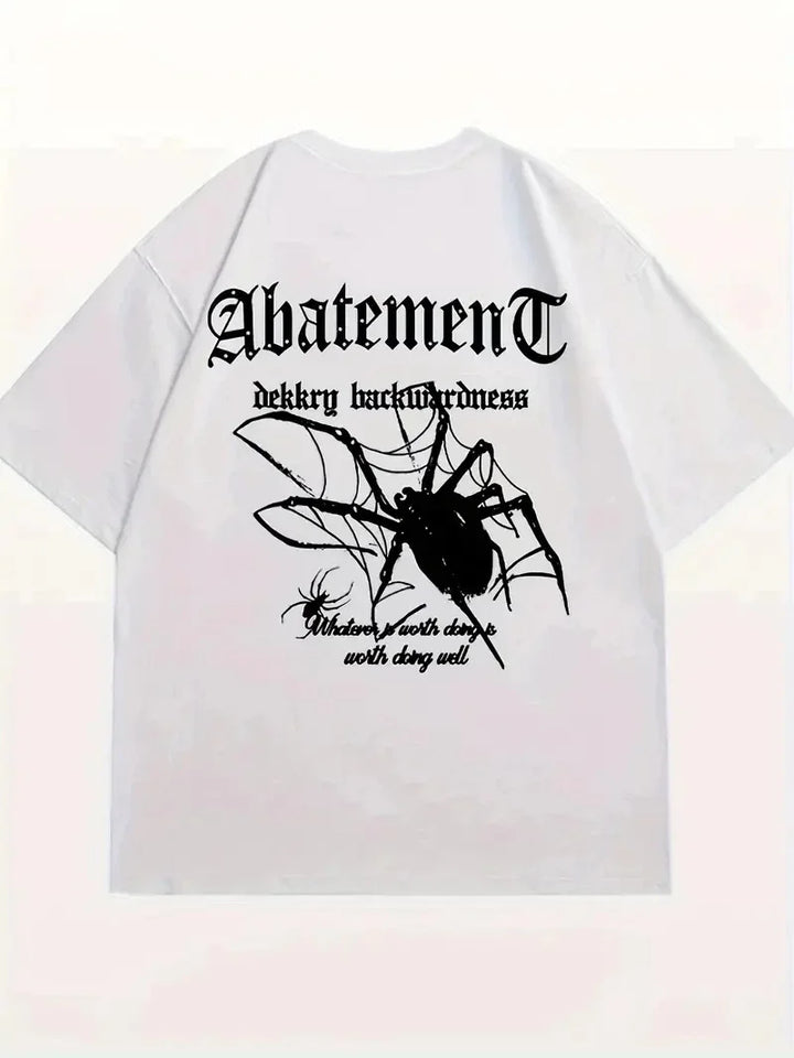 Örümcek Ağı Desenli Baskılı Oversize Bisiklet Yaka T-shirt - Beyaz