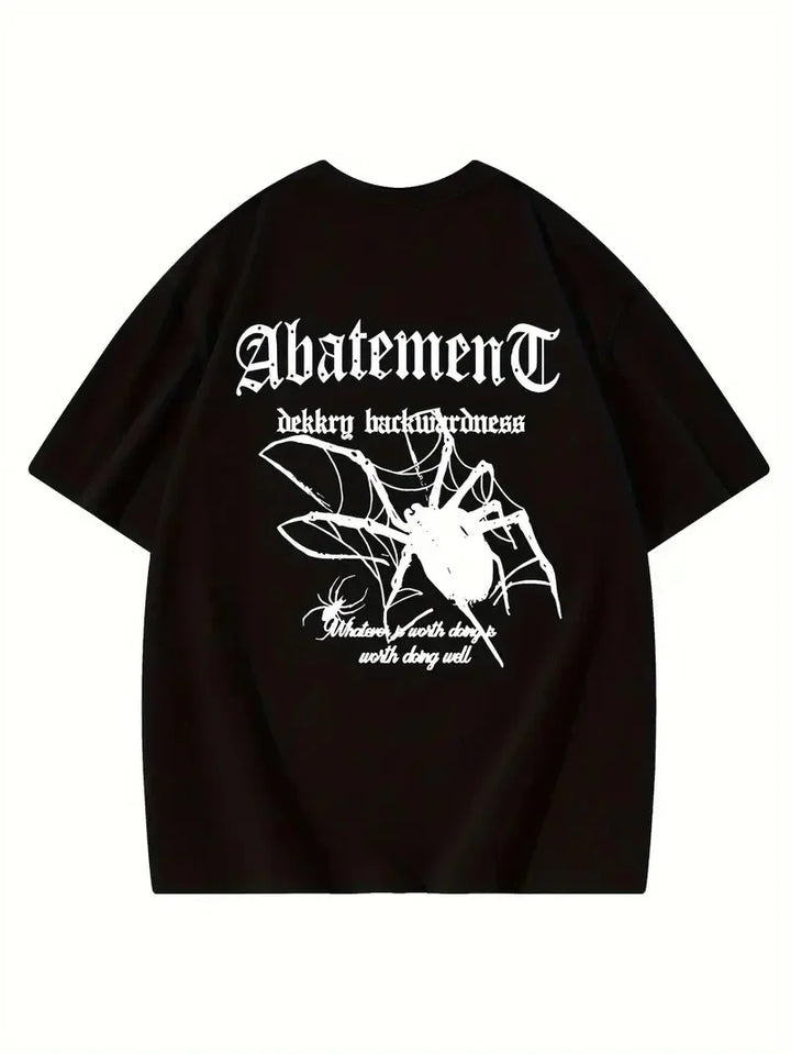 Örümcek Ağı Desenli Baskılı Oversize Bisiklet Yaka T-shirt - Siyah