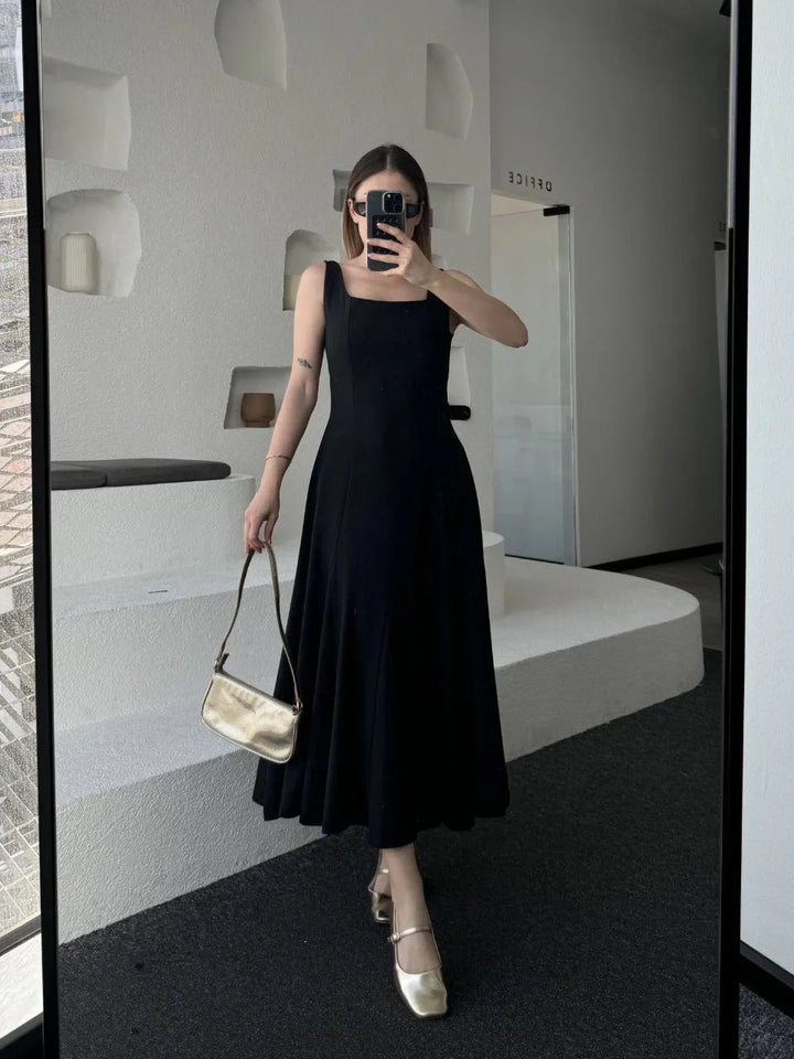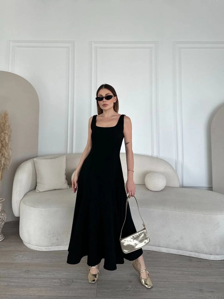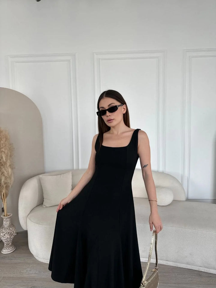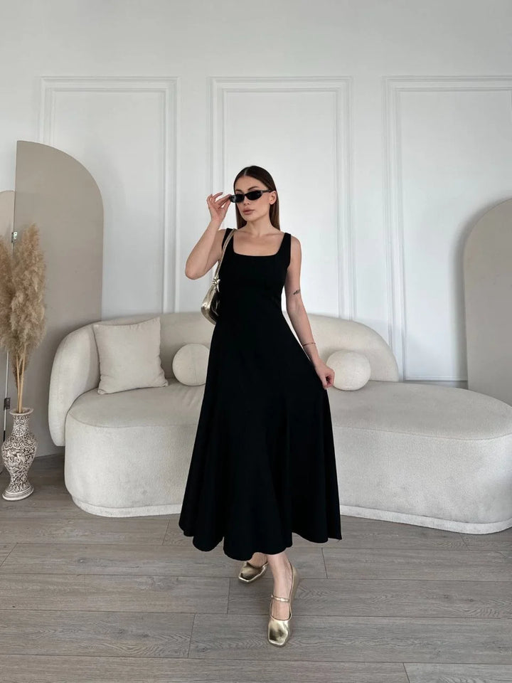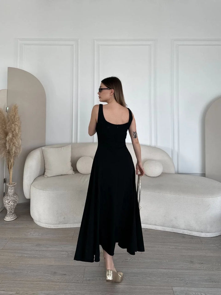 Sırt Dekolteli Kolsuz Uzun Elbise - Siyah